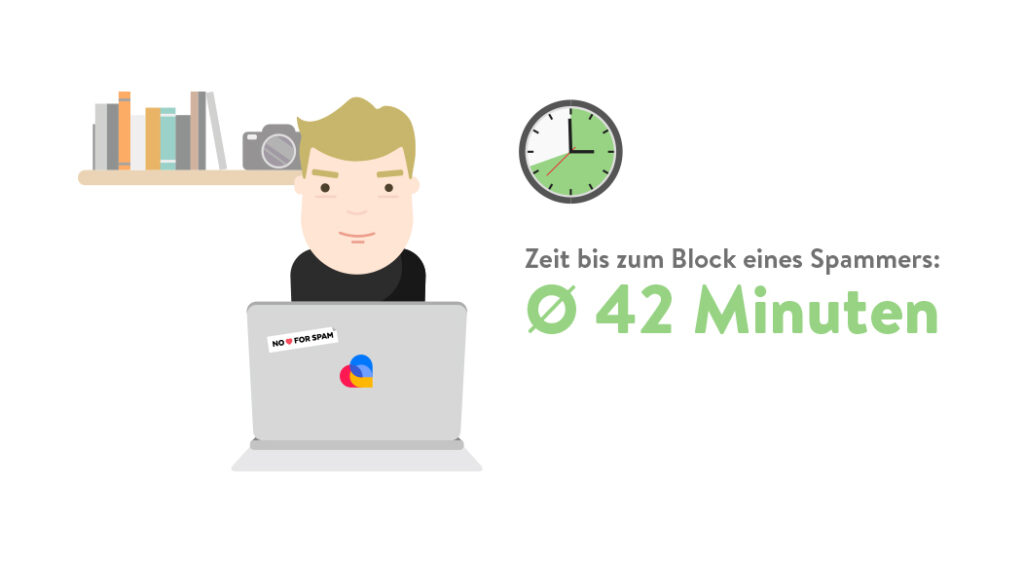 Von der ersten Aktivität an – z.B. ein abgegebenes Match-Vote – bis zur Sperrung des Profils durch unser Anti-Spam-System vergehen im Schnitt 42 Minuten.